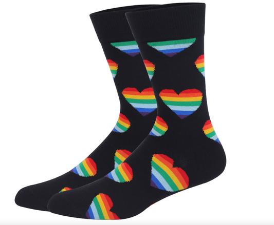 Socken in schwarz oder weiss mit Regenbogenherzen