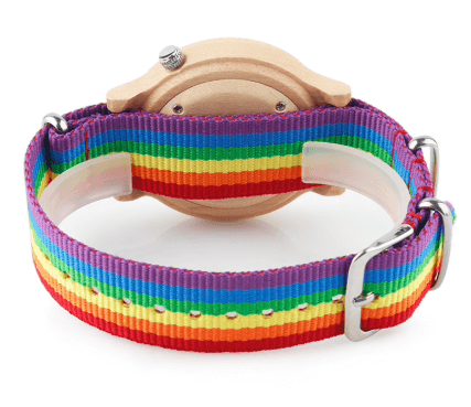 Belle montre-bracelet en bois avec bracelet arc-en-ciel
